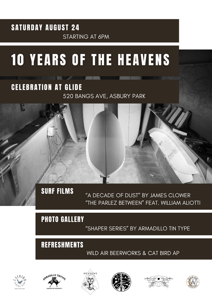 Come join us starting at 6pm on Saturday, August 24, 2024 at Glide Surf Co (Asbury Park, NJ, USA) to celebrate 10 years of making surfboards. We'll be showing a...