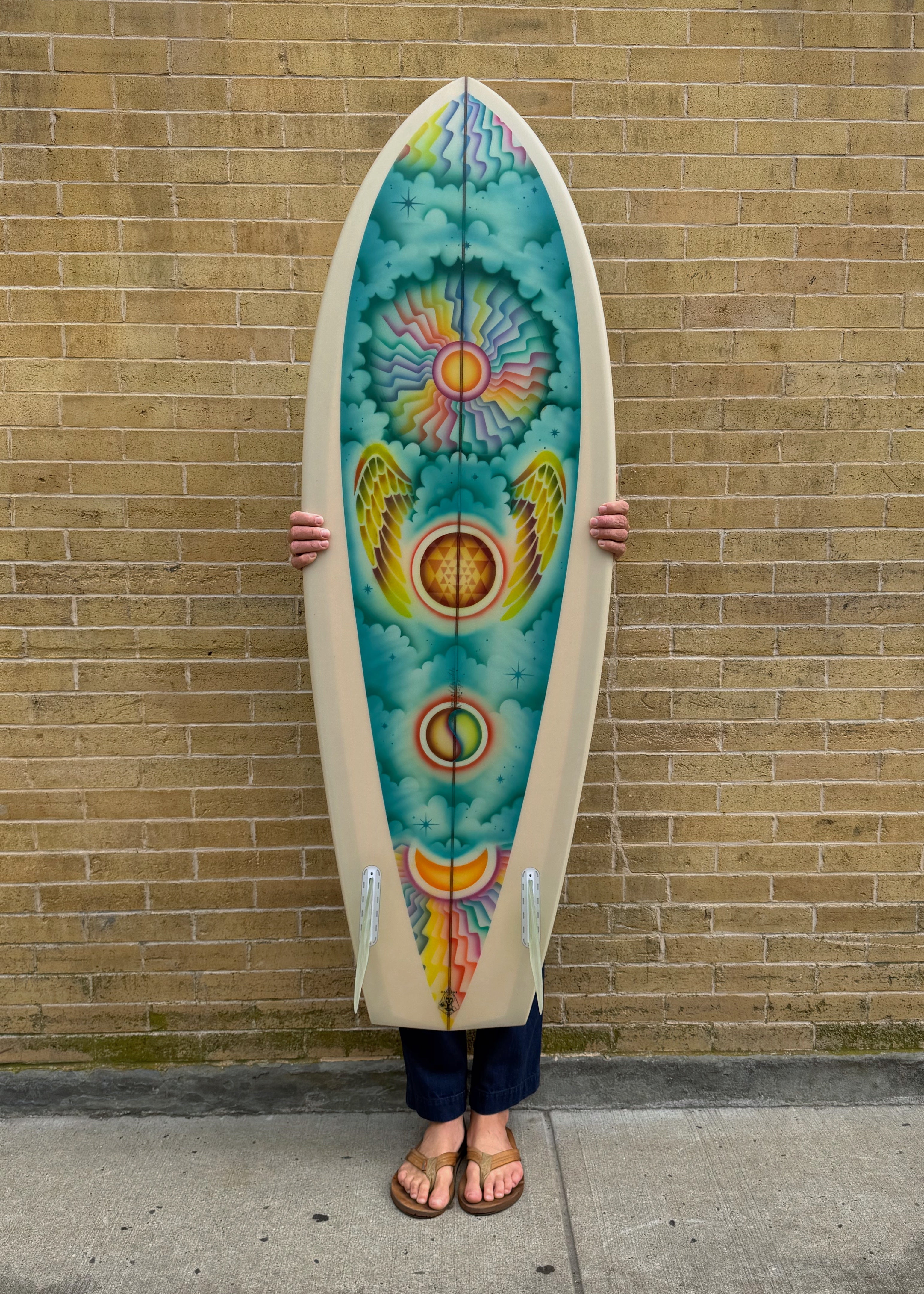 Pat Barnickel is a NJ-based artist who grew up surfing at the Jersey Shore. He started his tattoo career in 2018 at Electric Tattoo, but only began experimenting with airbrushing on surfboards earlier this year—bringing his artistic vision full circle by blending his love for surfing with his skills as a tattoo artist.