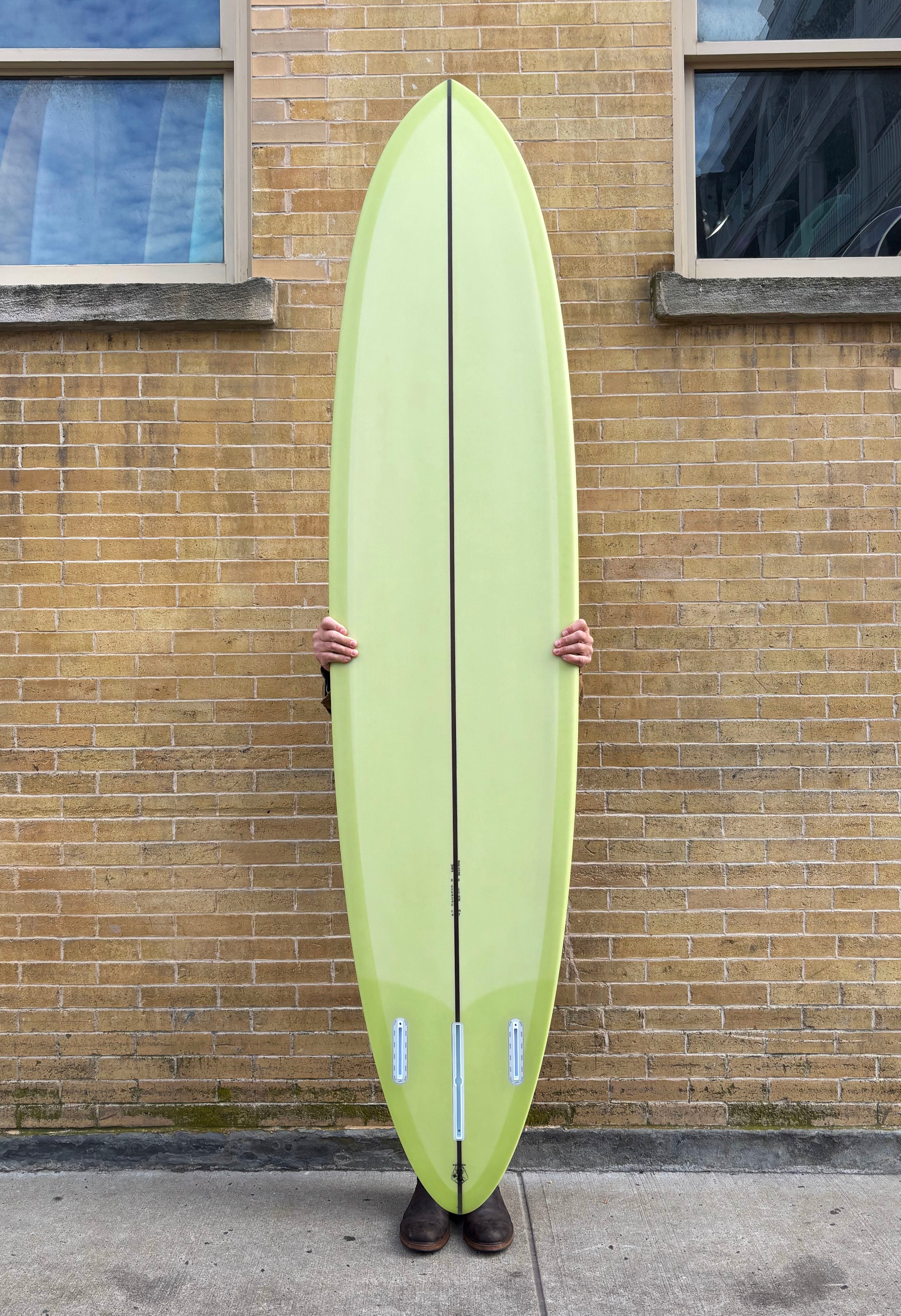 The bottom shape is pure FM DNA, just without the channel. A heavy spiral vee puts these onto rail effortlessly and with power. The rocker is mellow but continuous, lending itself to lots of glide and trim in smaller waves, with flow and connectivity. The thin foil and projection-happy bottom keep these things interesting for all types of surfers looking to go a step beyond the average in the mini-glider category.