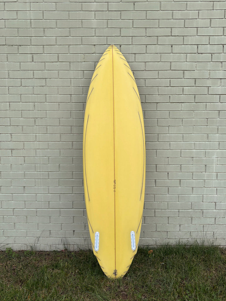 The WRP (Winged Round Pin) is a long-time secret-menu-item in the Lovelace quiver. This twin fin (T) version is the most recent update to the design with changes in the bottom shape and fin placement most notably; with a vee-single-spiral-vee-flat bottom. First shaped for Hawai'i's Bryce Baker and slowly trickled out to the crew - New Jersey's Phil Browne, and Northern California's Darshan Gooch both tested the design in their back yards and reviews all came back the same: Connected, smooth and very trustworthy in the tube.