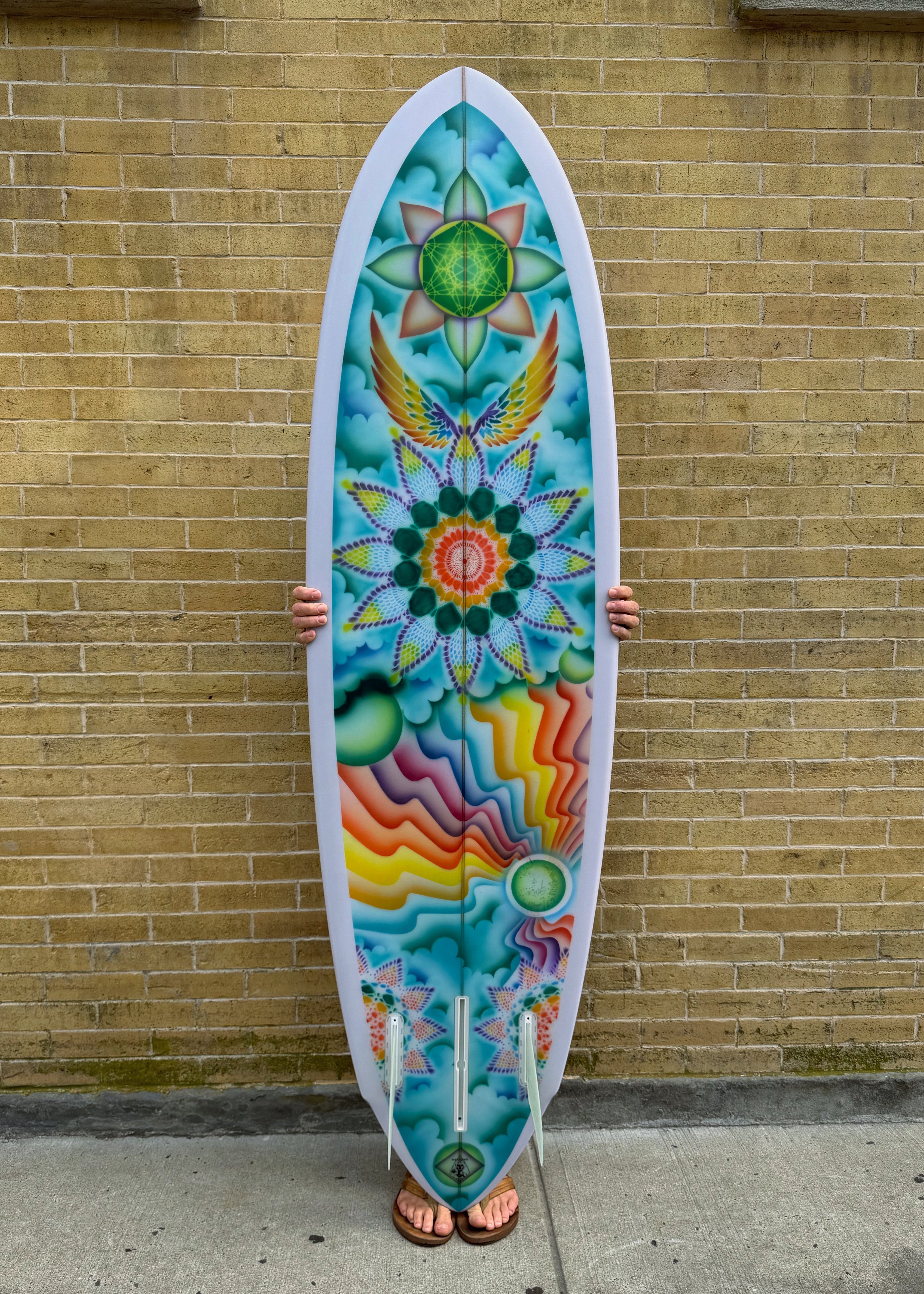 Pat Barnickel is a NJ-based artist who grew up surfing at the Jersey Shore. He started his tattoo career in 2018 at Electric Tattoo, but only began experimenting with airbrushing on surfboards earlier this year—bringing his artistic vision full circle by blending his love for surfing with his skills as a tattoo artist.