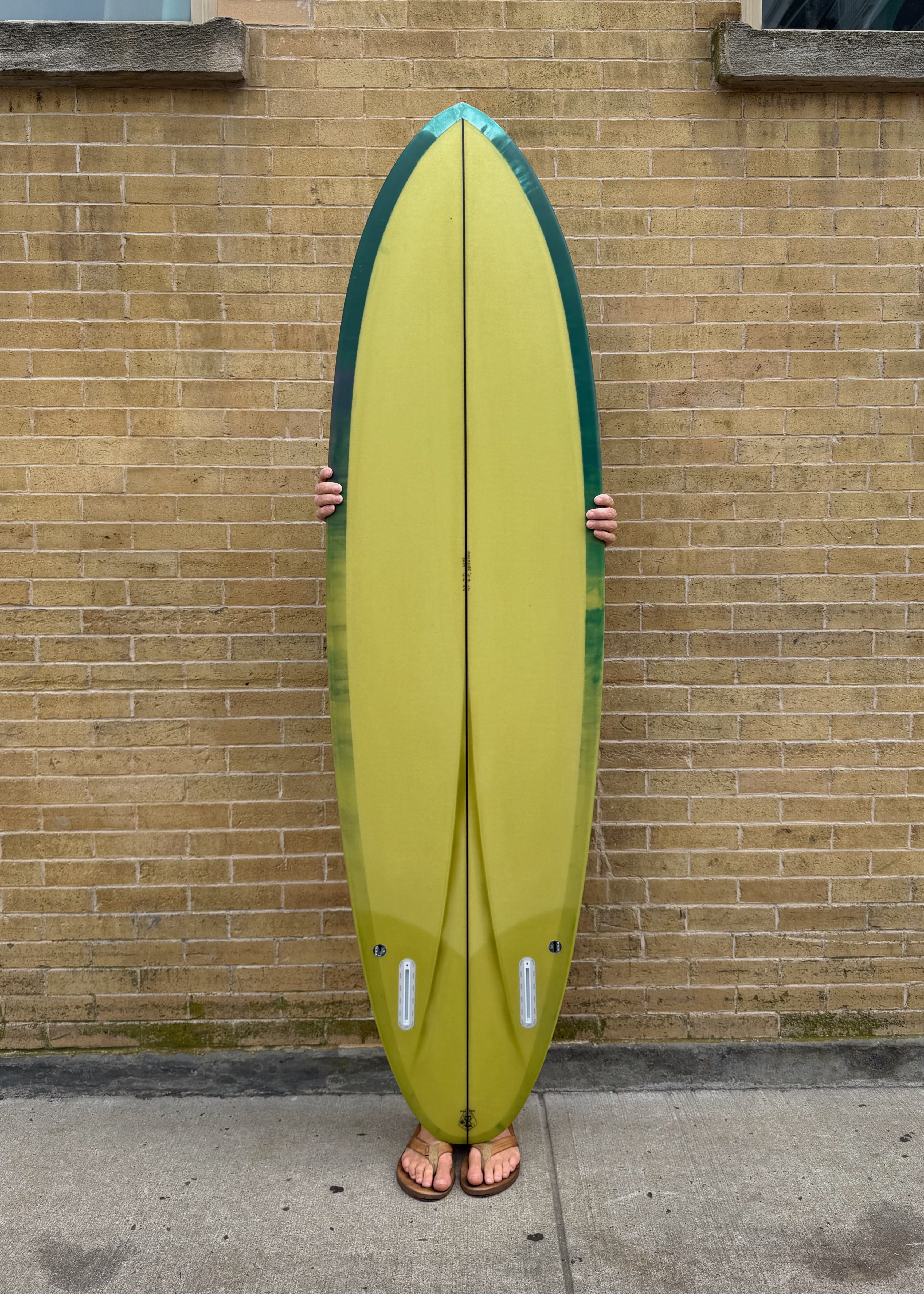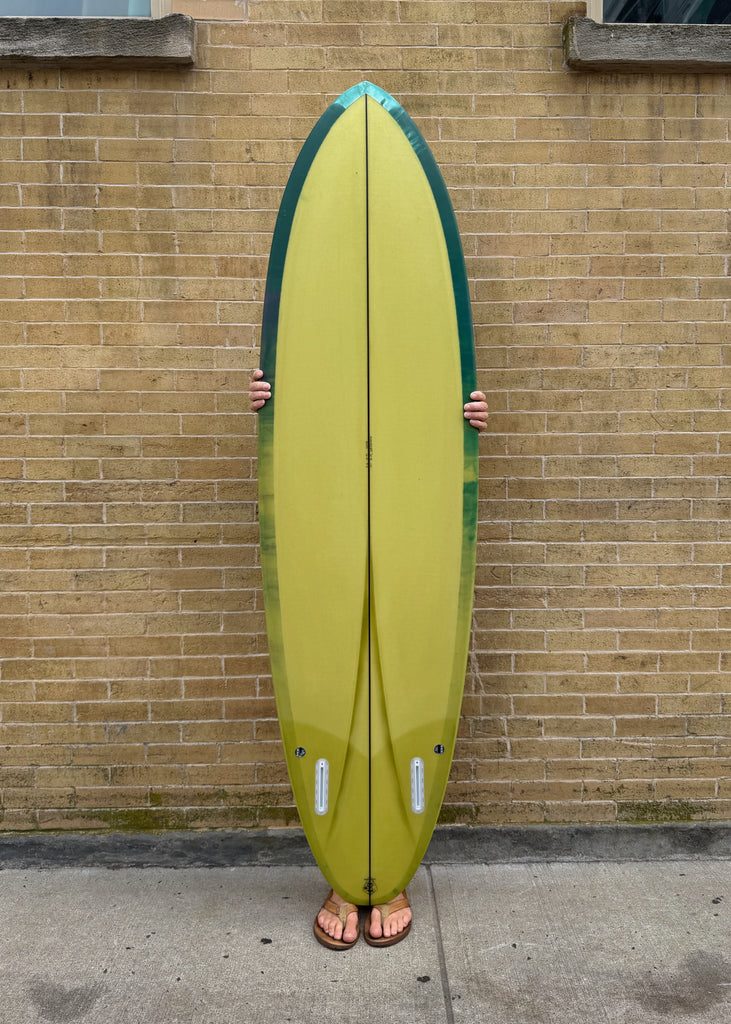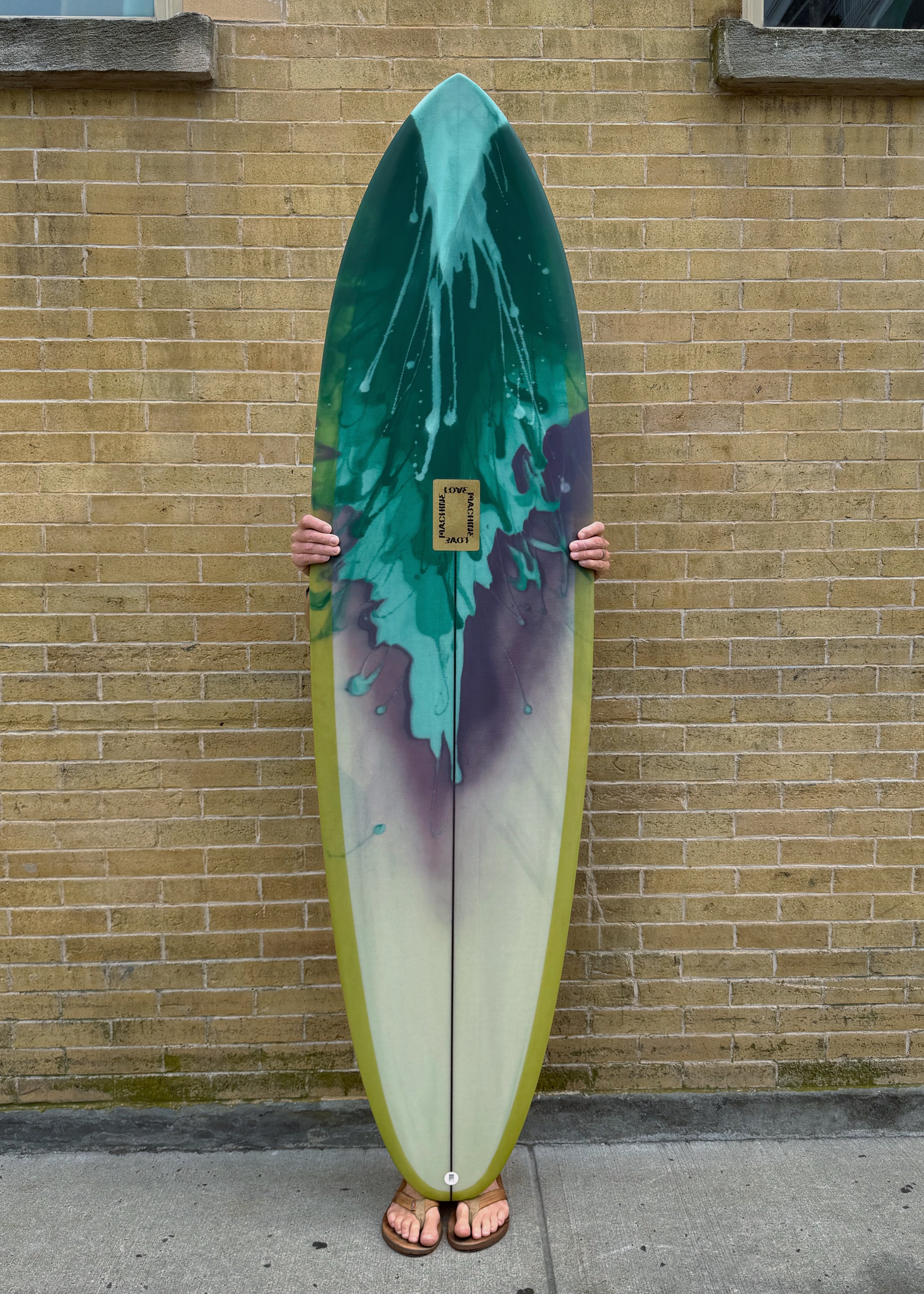 Weapons grade. The most aggressive midlength in the Love Machine quiver, the 6’9 FM sports a softened squash tail vs. its larger counterparts, making it extremely quick down the line while the combination of bottom shape and fins keeps it rolling effortlessly onto rail and accelerates when pushed on. The FM is known for its smoothness and ability to hold powerful arcs, at 6’9 this version will fit in your quiver as a performance shortboarder’s midlength, or a longboarder’s hotrod.