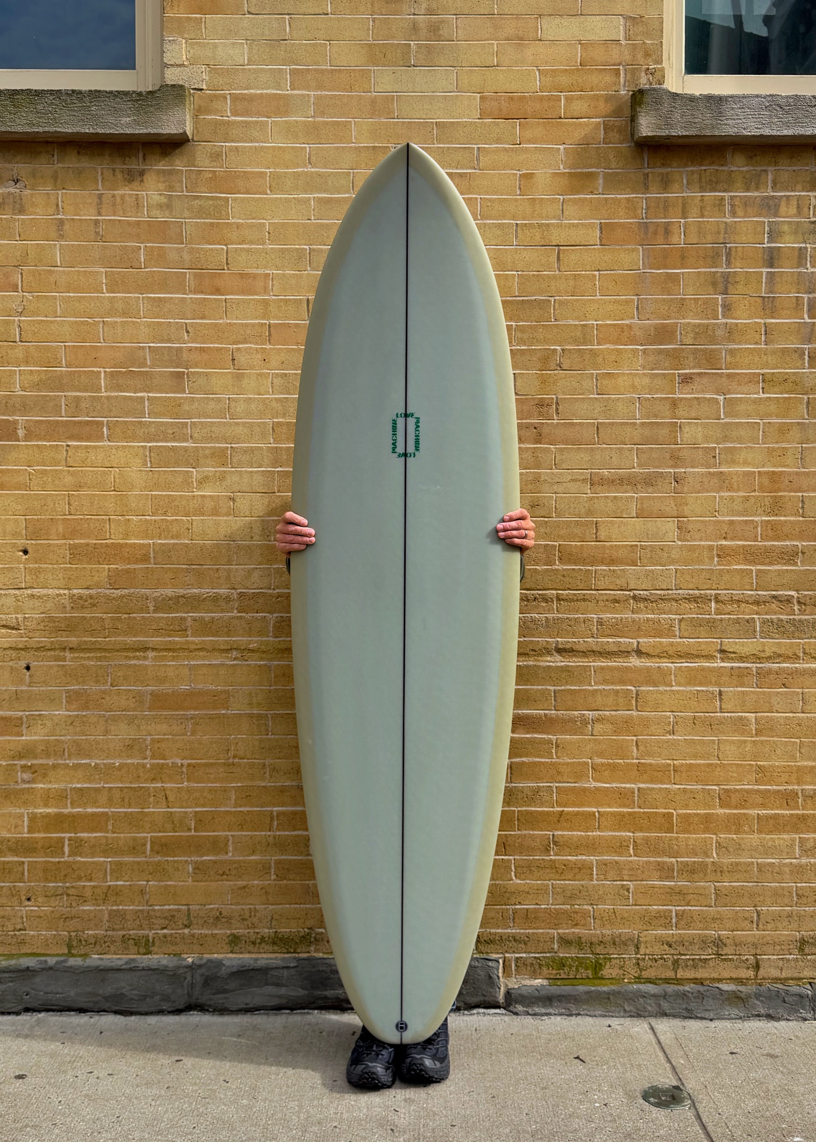 Weapons grade. The most aggressive midlength in the Love Machine quiver, the 6’9 FM sports a softened squash tail vs. its larger counterparts, making it extremely quick down the line while the combination of bottom shape and fins keeps it rolling effortlessly onto rail and accelerates when pushed on. The FM is known for its smoothness and ability to hold powerful arcs, at 6’9 this version will fit in your quiver as a performance shortboarder’s midlength, or a longboarder’s hotrod.