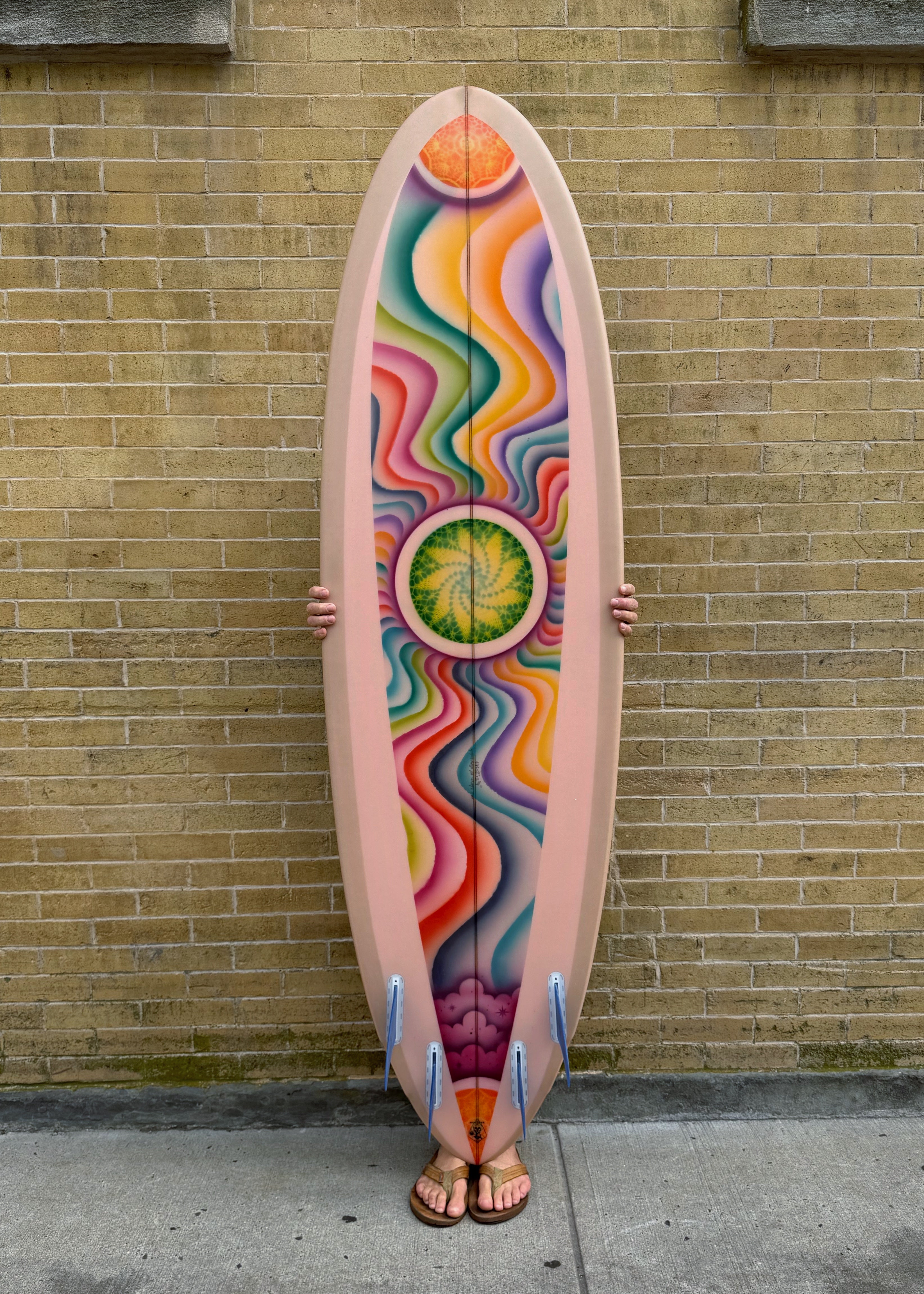 Pat Barnickel is a NJ-based artist who grew up surfing at the Jersey Shore. He started his tattoo career in 2018 at Electric Tattoo, but only began experimenting with airbrushing on surfboards earlier this year—bringing his artistic vision full circle by blending his love for surfing with his skills as a tattoo artist.