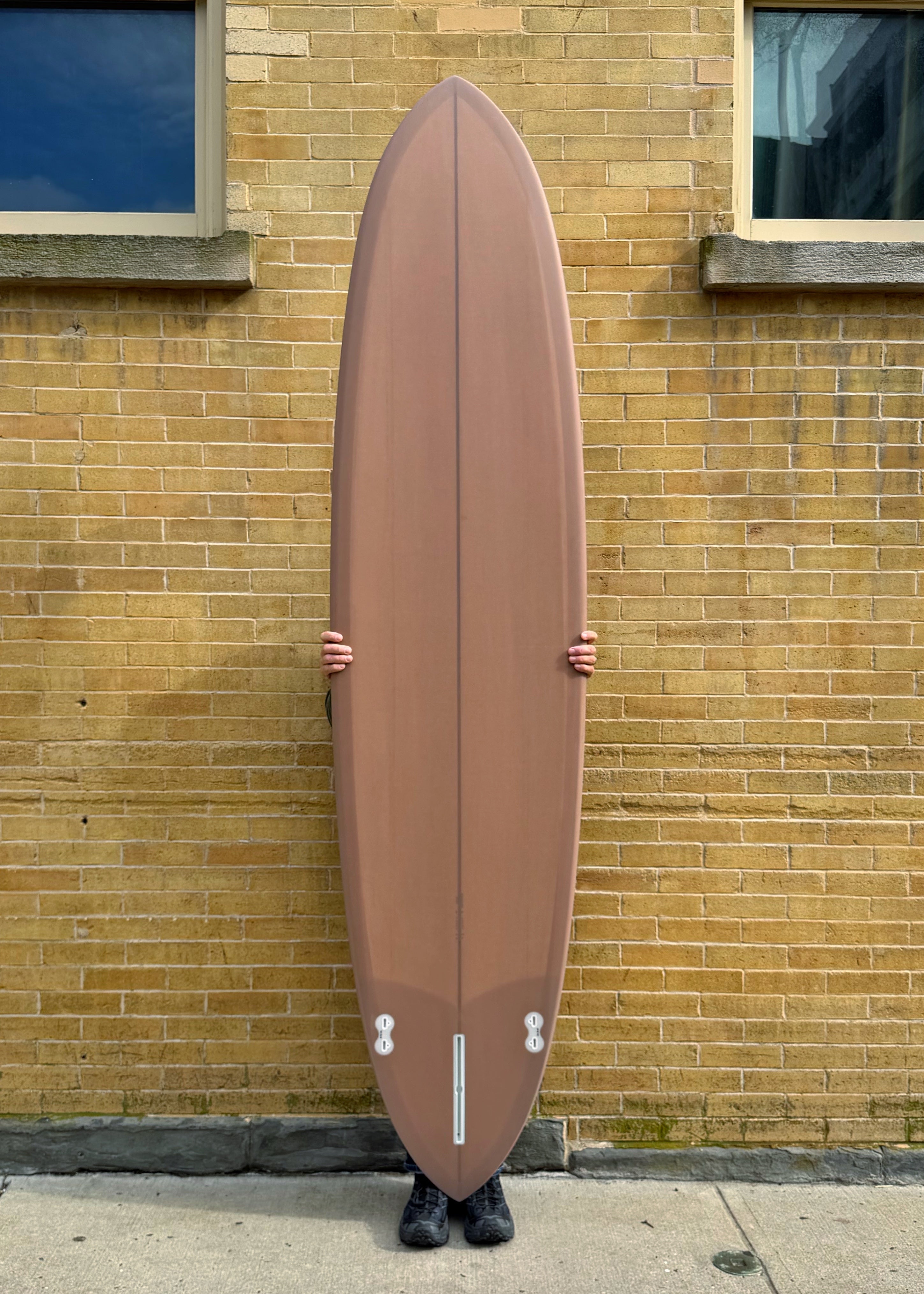 This length has been a sweet spot for years for the Lizzy. I often find myself returning to the mid 8’ Lizzy as a suggestion for those who prefer a little more volume than the super-foiled original 7’10, often times for older crew who want more cruise-factor, or younger surfers who want to come off logs for something with similar paddle speed but far more agility and projection.