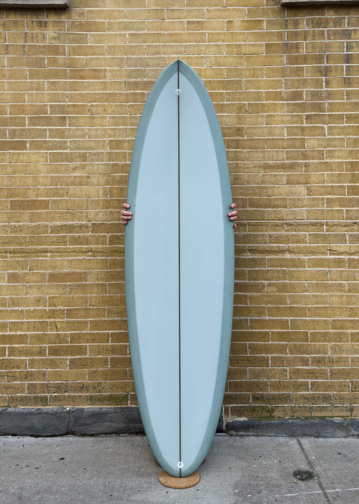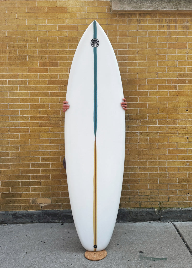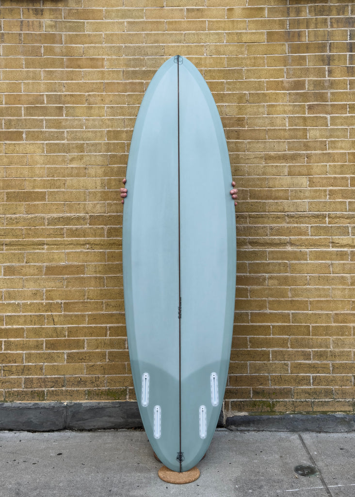 I've also been riding a board I actually made here in NJ last summer [2022]. It's a 6'1" x 19 or 18 7/8" quad shortboard with the wide point moved up, with a squared swallow tail, & that inverted vee nose entry. And that's been the most efficient performance short board that I've made for myself.