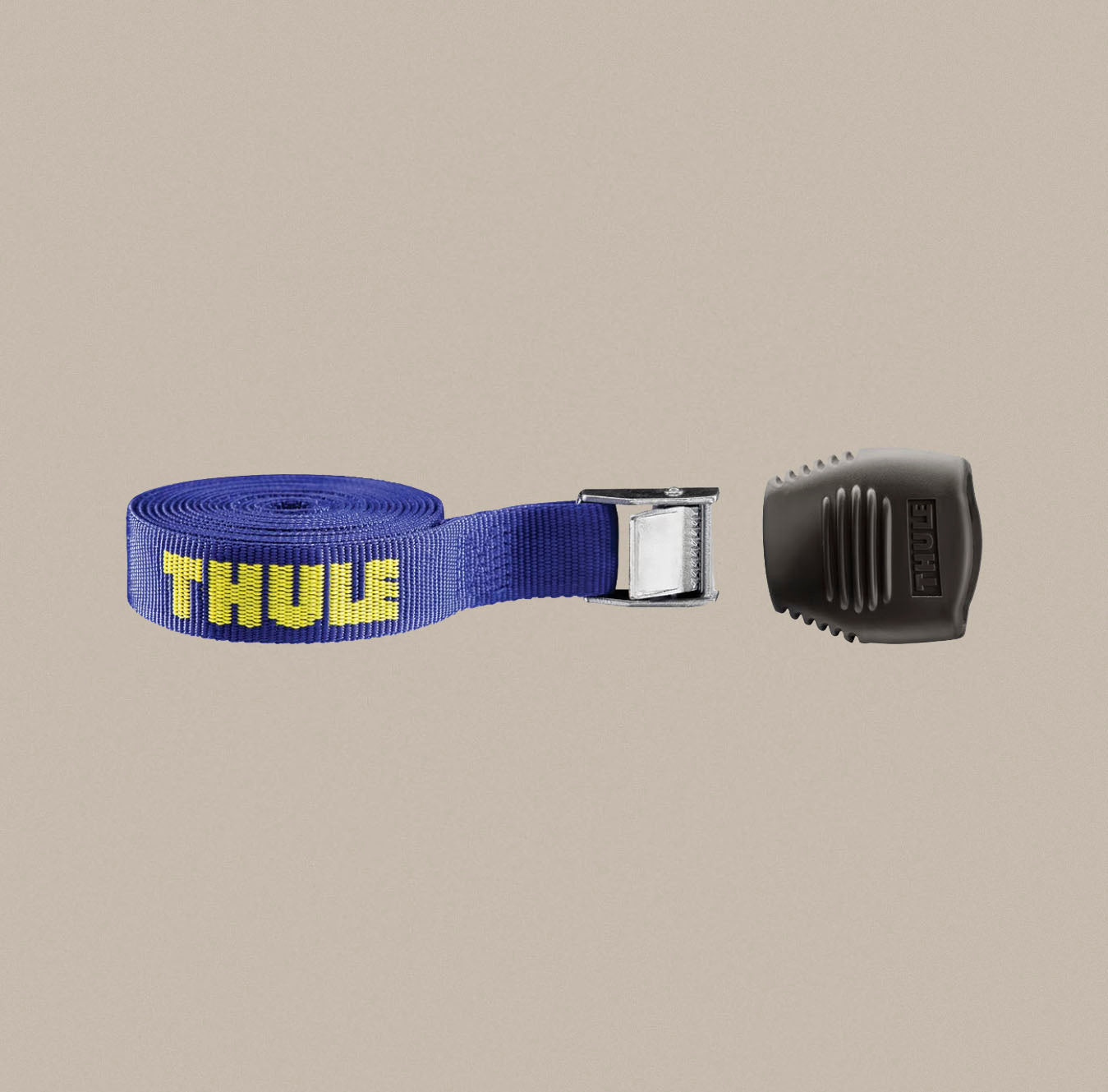 A 9ft 2-pack of blue load straps with Thule's patented buckle bumpers. Heavy-duty load straps secure smaller items, such as surfboards, safely to your vehicle’s base rack system. Nylon webbing is UV resistant.