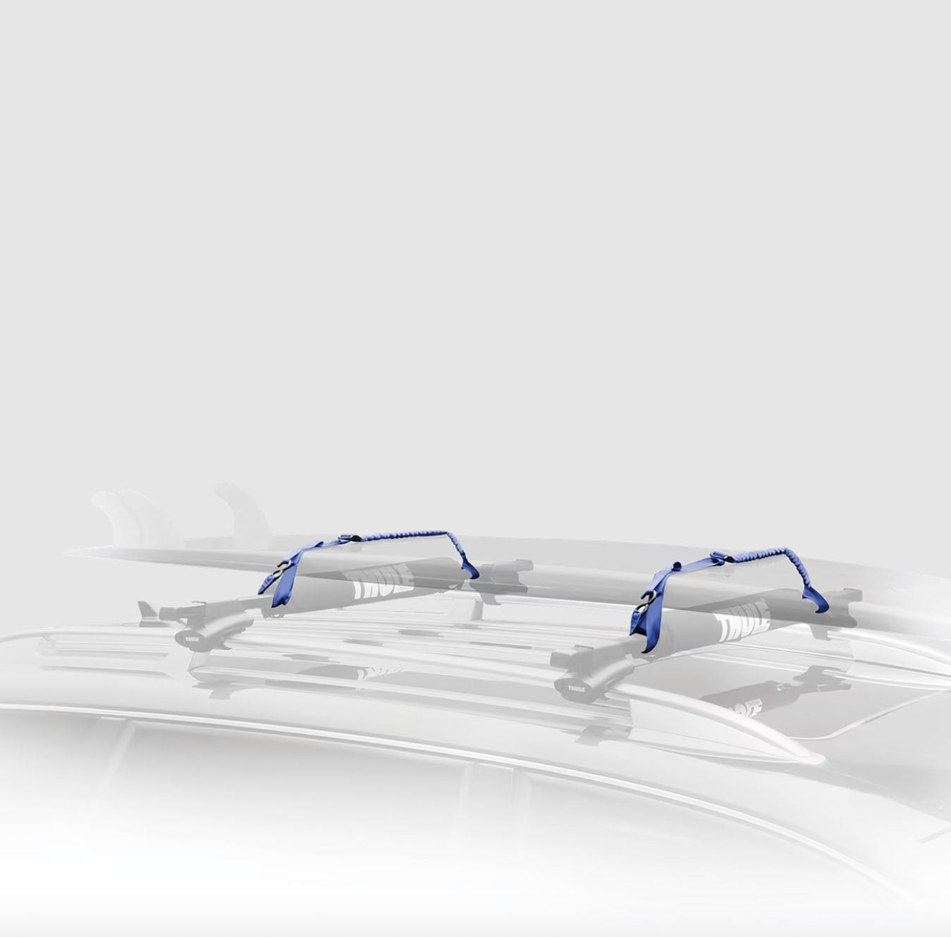 Bungee surf straps stretch to secure different size surfboards to the vehicle roof rack for safe and secure transport. Simple and easy to use cinching system keeps boards protected and stable during transit. Looped ends fasten securely around the vehicle’s load bars. No-fade UV resistant straps deliver long term durability.
