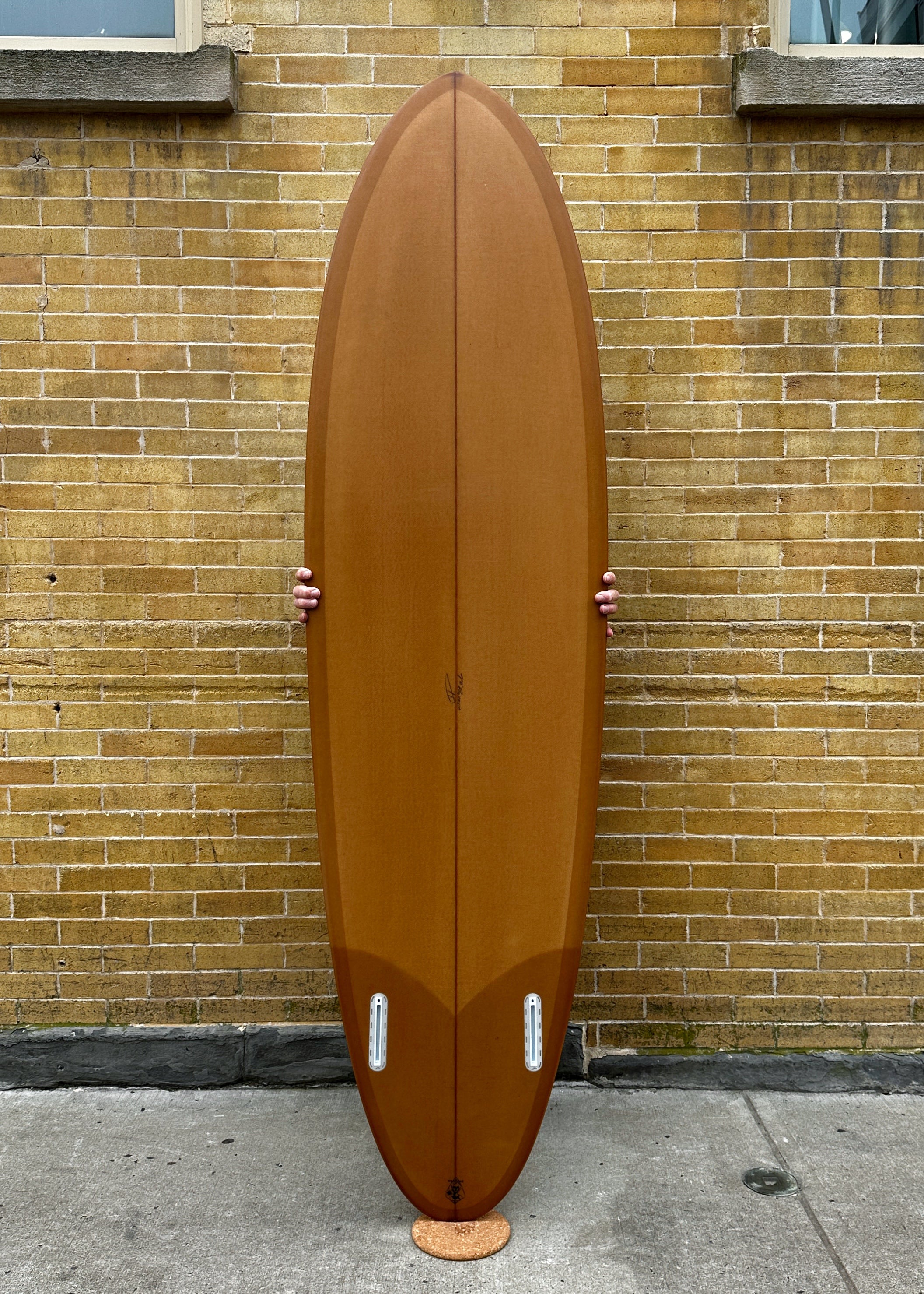 Decode that model name and you’ve got it! A ‘Power Cat’ in boating terms, is a powered twin hull. Full displacement hull foil nose to tail, these blades are meant to scream with relative ease. The twin fin variation gets them on rail quicker, and with more forgiveness than the average single fin hull – much better suited to the average surfer and average waves, but still plenty foiled to satisfy the seasoned hull-head’s need for knife-edge trim speed. Best between 6’10 and 8′.