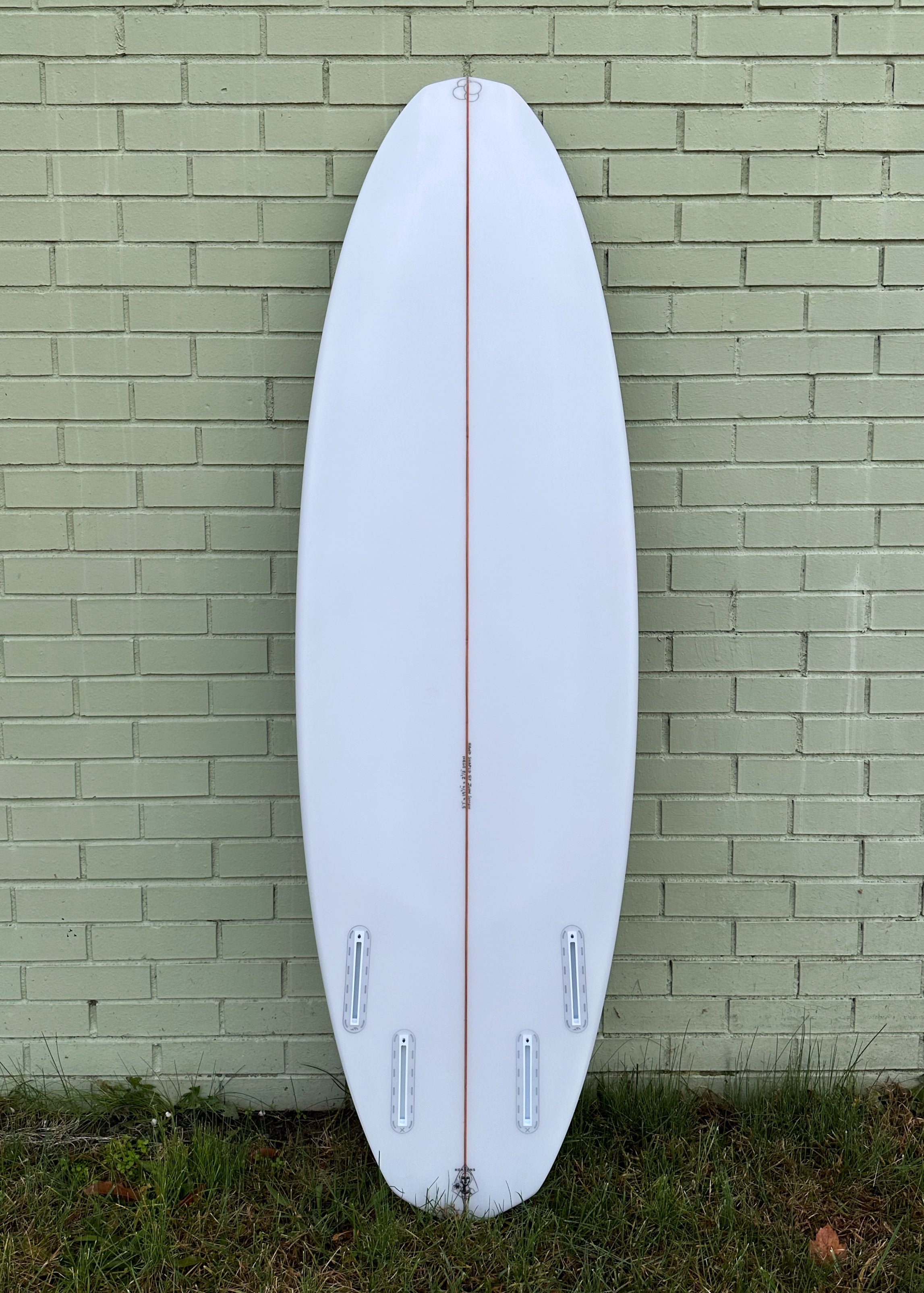 This shape is inspired by Jeff Alexander, Jon Lalane, and the Gemini surfboard design. I learned a lot from the Gemini design and it has since been a big inspiration. This shape is designed to be a user-friendly performance shortboard replacement for a wide of surfers. I used some design elements from the Gemini that I really liked and applied them to this design. The bottom shape consists of a single concave entry, to inverted panel V in the tail. The inverted panel V is essentially a single concave with straight lines rather than curves. This bottom shape straightens the centerline rocker curve for speed in a straight line but keeps more rail line rocker curves intact for maneuverability on rail and a shorter turning radius. This shape features a diamond tail to shorten the board’s rail line for maneuverability on a longer board. The term “double bump” comes from the soft bumps/wings in the outline placed near the fins. These help to pull in the tail for control and maneuverability but do so with straighter lines rather than curves. It is available as a quad, thruster, or twin + 1 fin setup. This shape can be adjusted to fit a more specific surfer and wave type as well.