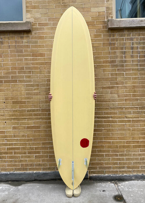 Originally the ThickLizzy was an experimental mid-length for Trevor Gordon. We wanted to make something that made good speed on flat waves, and could be surfed tight in the pocket like the v.Bowls. What we didn't expect was the incredible projection off such a big board, so after a year or so of playing with the first version I started exploring the design and eventually making smaller versions. The Lizzy has a long, low rockerline and has a bottom shape that I consider somewhat of a Santa Barbara specialty - the tri-plane bottom is used in a lot of my designs to allow a wider board to switch onto rail much cleaner and quicker than it's actual size. What it gives the Lizzy is a much more active, positive response on rail; You can cruise to your heart's content, or crank it off the bottom and crack the lip with a lot more aggression than any other mid-length of my design.