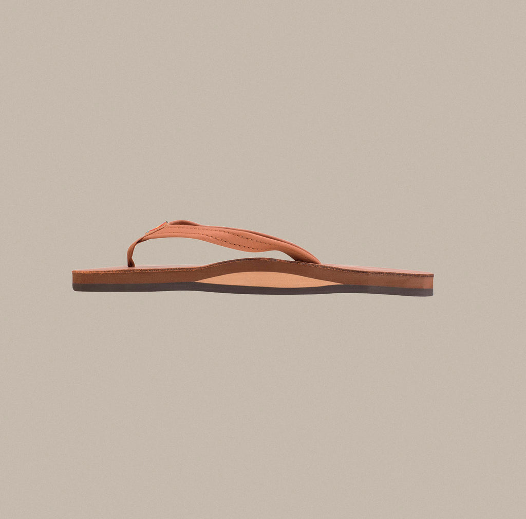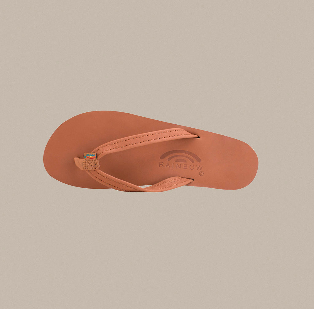 If any sandal says Rainbow®, this is it! This single layer classic leather sandal is offered with a 1/2" narrow strap for a feminine touch.